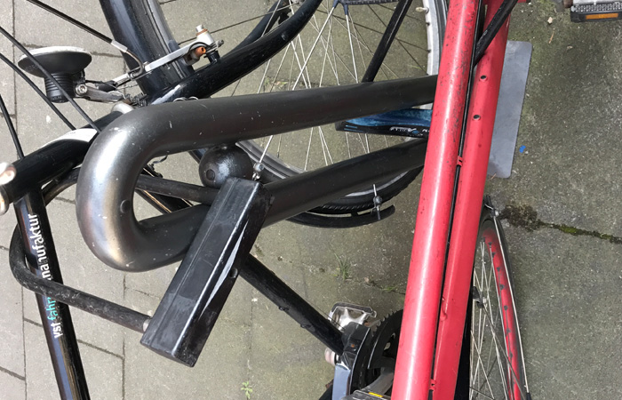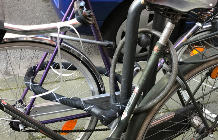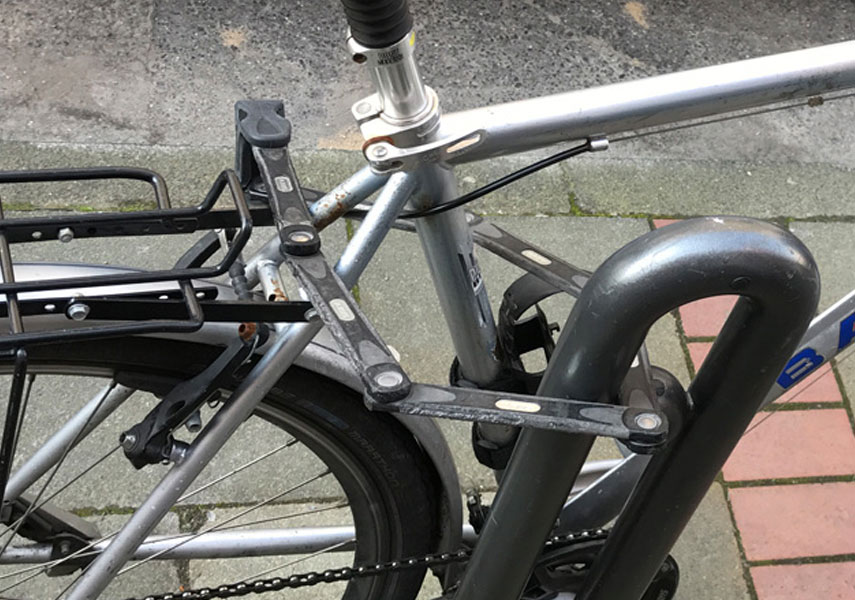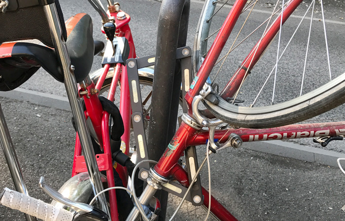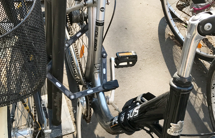 こう言っては失礼だが、泥棒が狙わなさそうなボロボロの自転車にまですごいカギがついている。