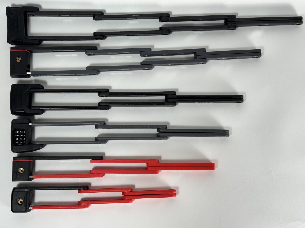 フォールディングロック、ブレードロック、プレートロック等いろんな呼び方がありますが、プレートを連結させたロック。ABUSはBORDO(ボルドー)という名前です。