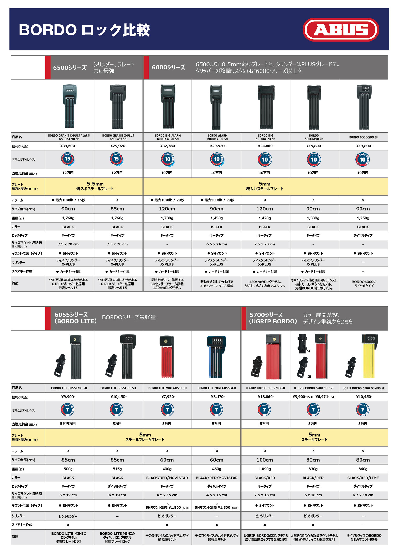 街でも見かけるあのロックはフォールディングロックで名前はBORDOというところまでは分かっても、その先、よくわからない番号が商品名に振られて、バリエーションも多数あるので分かりにくい!!
