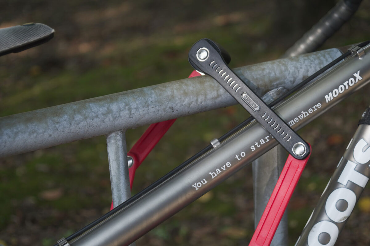 チェーンロックと異なりしっかりと形状を保つことができ、2つ巻きにしてマウントで固定することもできる。
