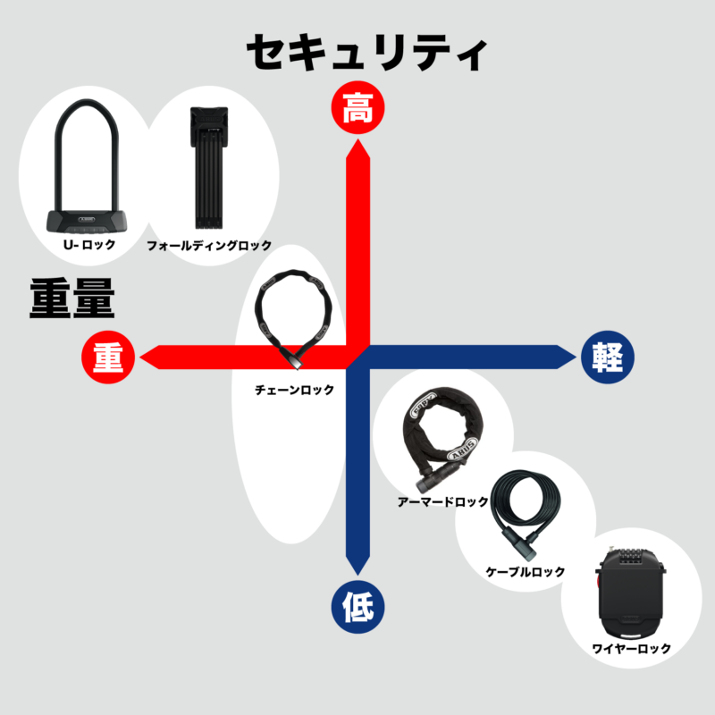 ロックの形状が違ってもセキュリティレベルを確認することで、強度の比較が可能です。