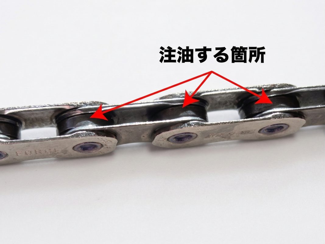 チェーンを構成するパーツの中で、最も注油が必要なのは「ローラー(コマ)」と「ピン」の隙間です。