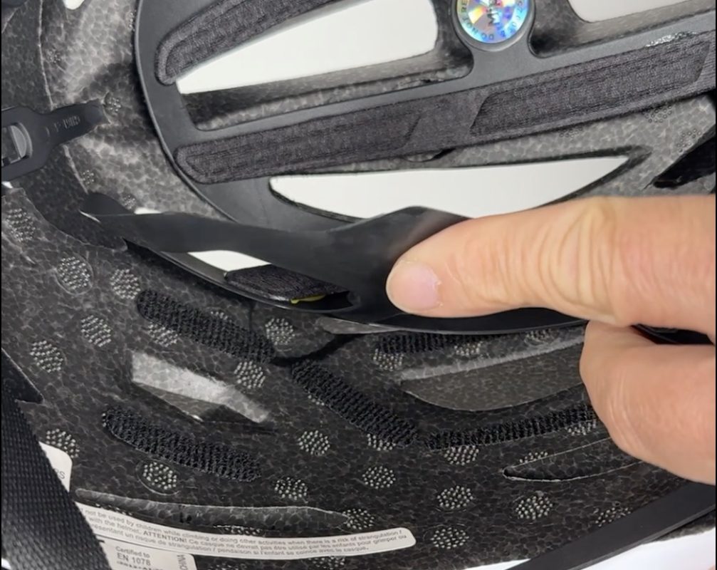 Mips社が開発したこの機構は、ヘルメットの内側にあるフィルムのようなもので、