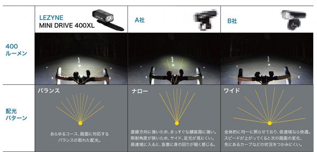 見るライトで重要なのは、自分の走行エリアをしっかり照らせているか。