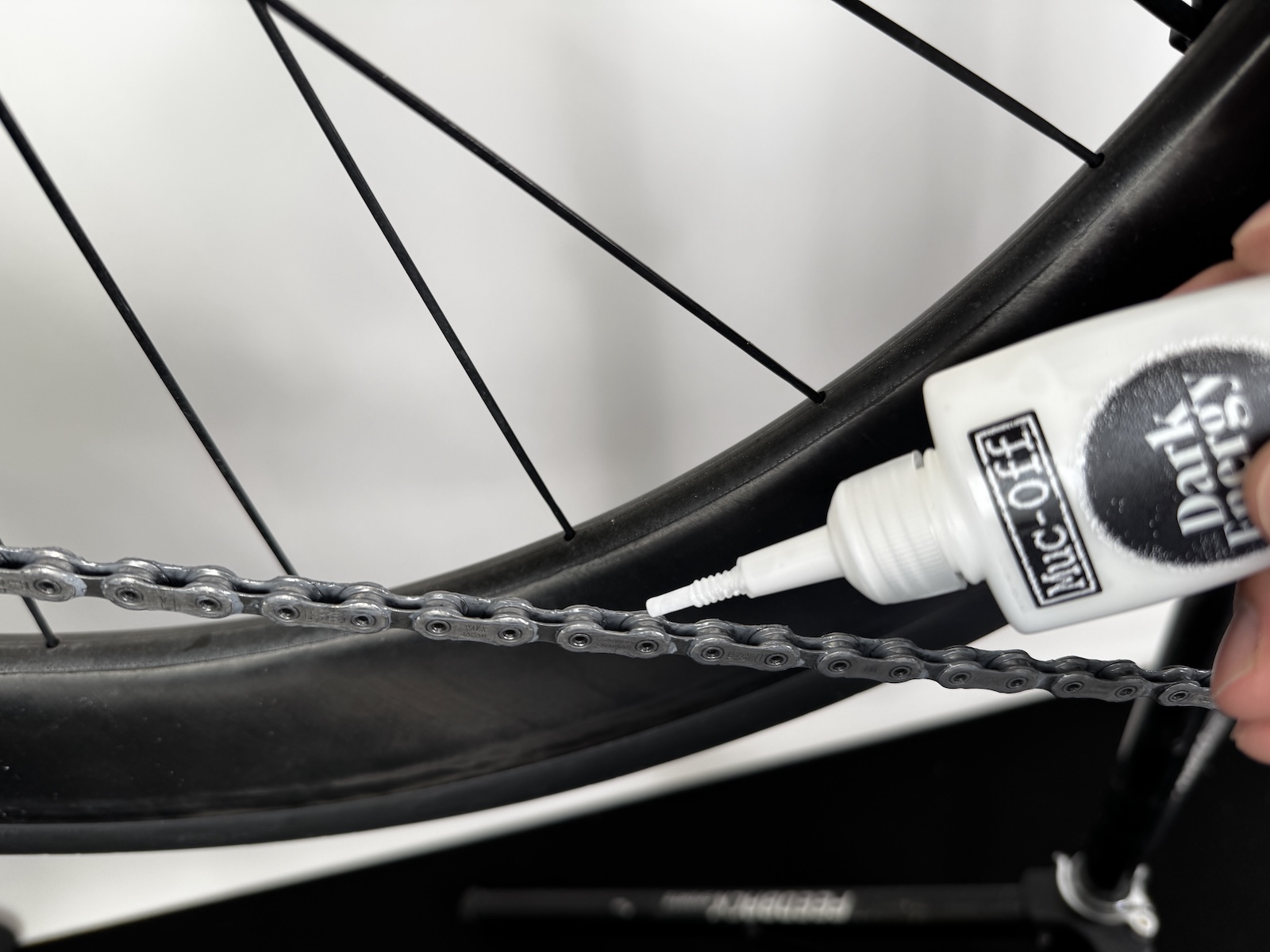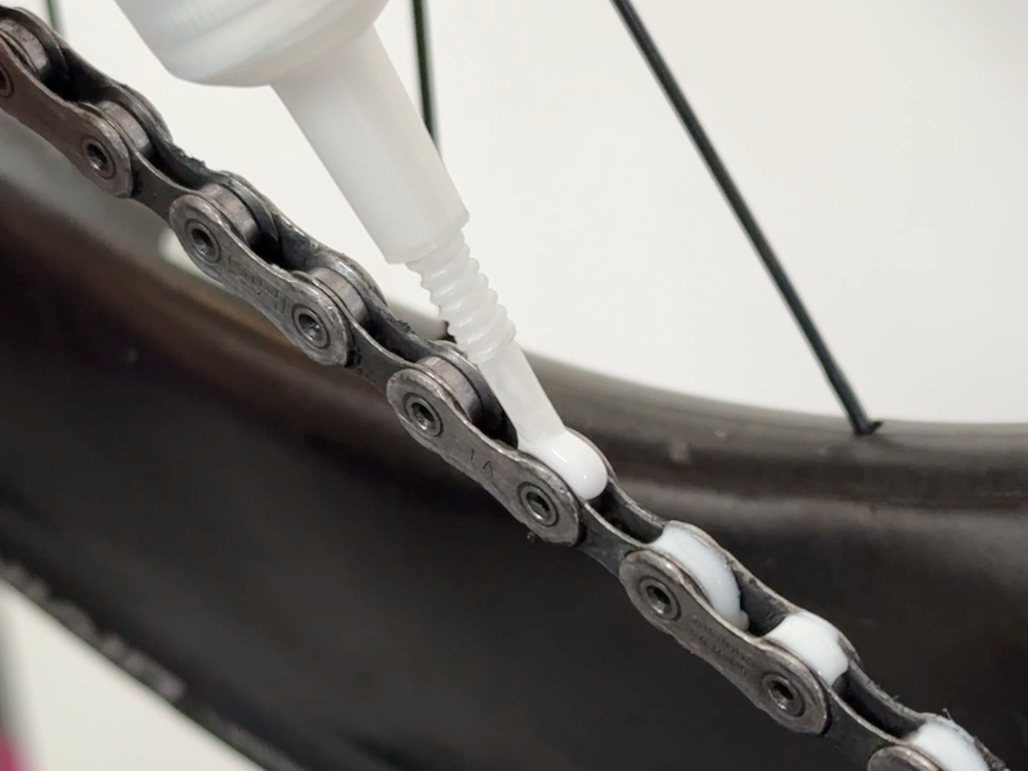 拭き取り後、各リンクに1滴ずつ、チェーン1周分を目安に塗布してください。