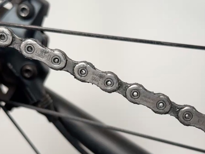 表面の汚れだけを取り除いているためチェーン内部のワックスは残っているので1周分のみでOKです。