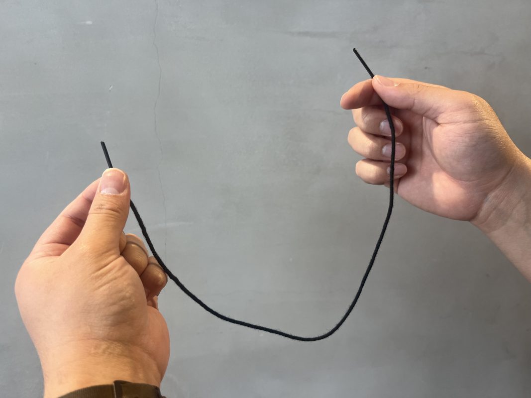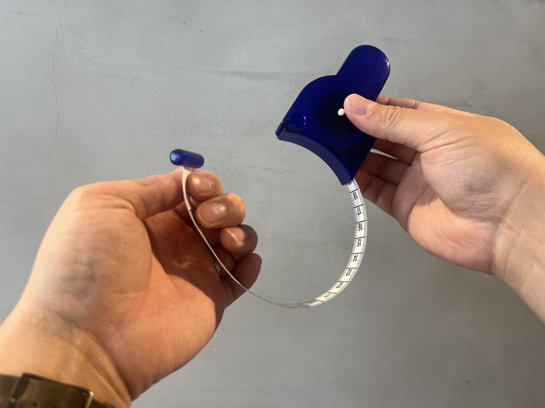メジャーがなければ紐でこのように測ってから定規に当てて長さを計測
