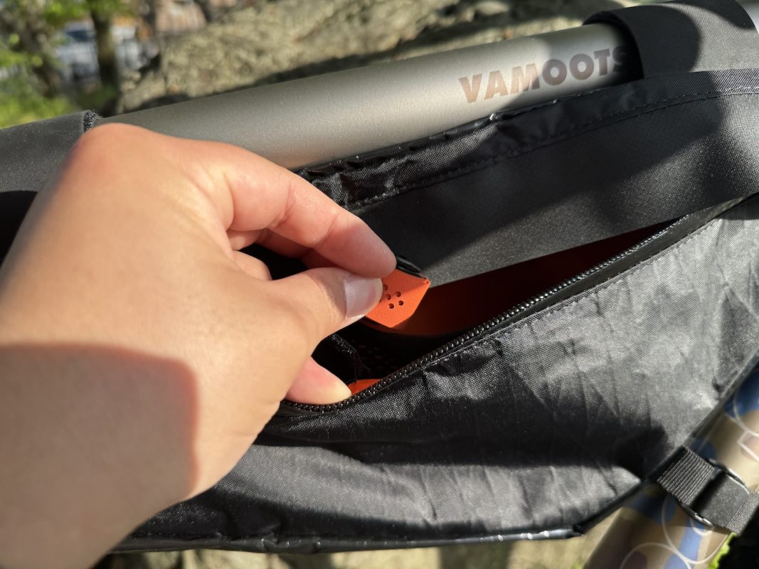 そのため、ちょっとしたバイクパックのポケットや隙間に収納したとしても、ストレージを圧迫しません。