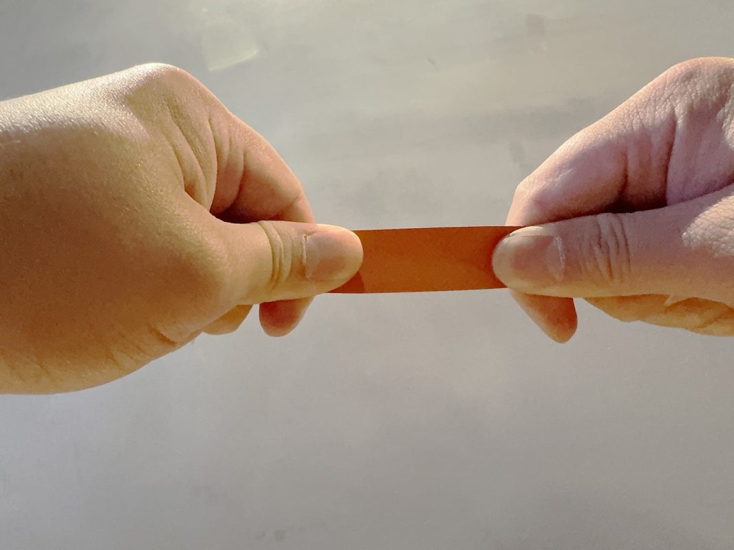 この薄さでありながら、グリップ力が高く、強く引っ張ってもちぎれにくいのが特徴です。