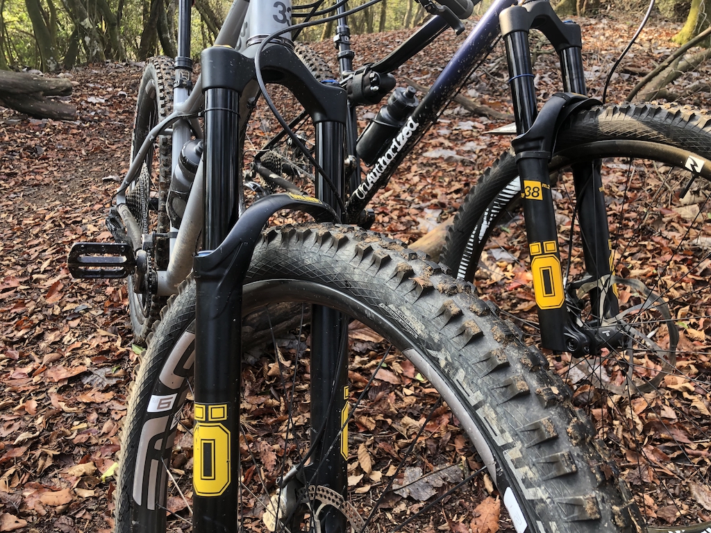 ストローク感の質が違うね、38の方がシットリ動く…エアチャンバーの容量か?同じ体重のセッティングチャートでも38の方が少し低くてもいいってなってるし…