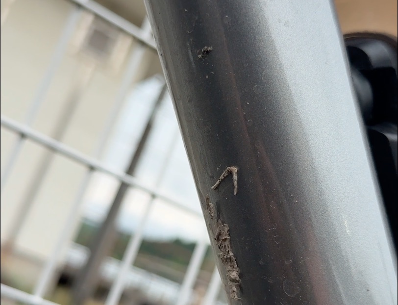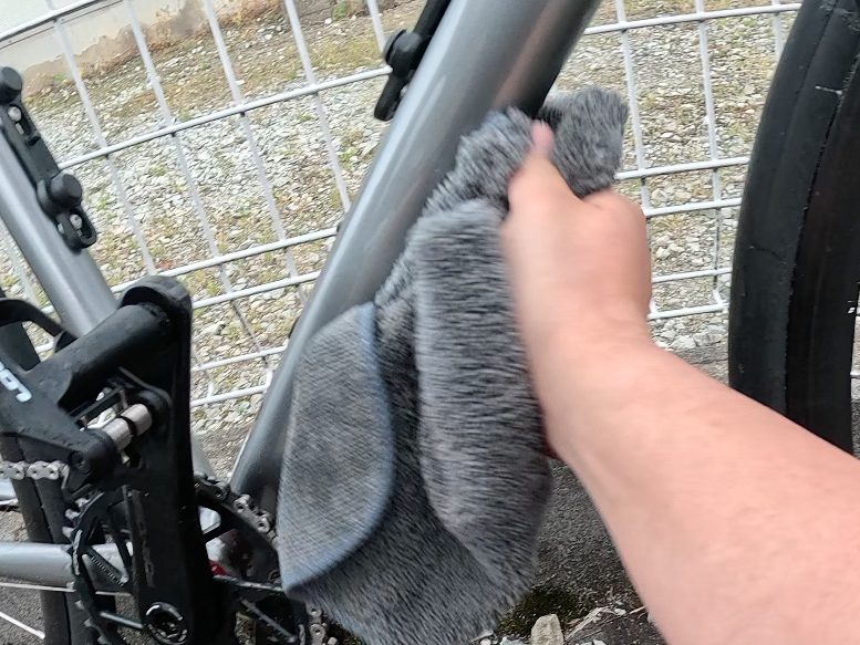 朝方まで雨が降っていたこともあり、路面は濡れており、ライド後のフレームは汚れがたくさん付着していました。