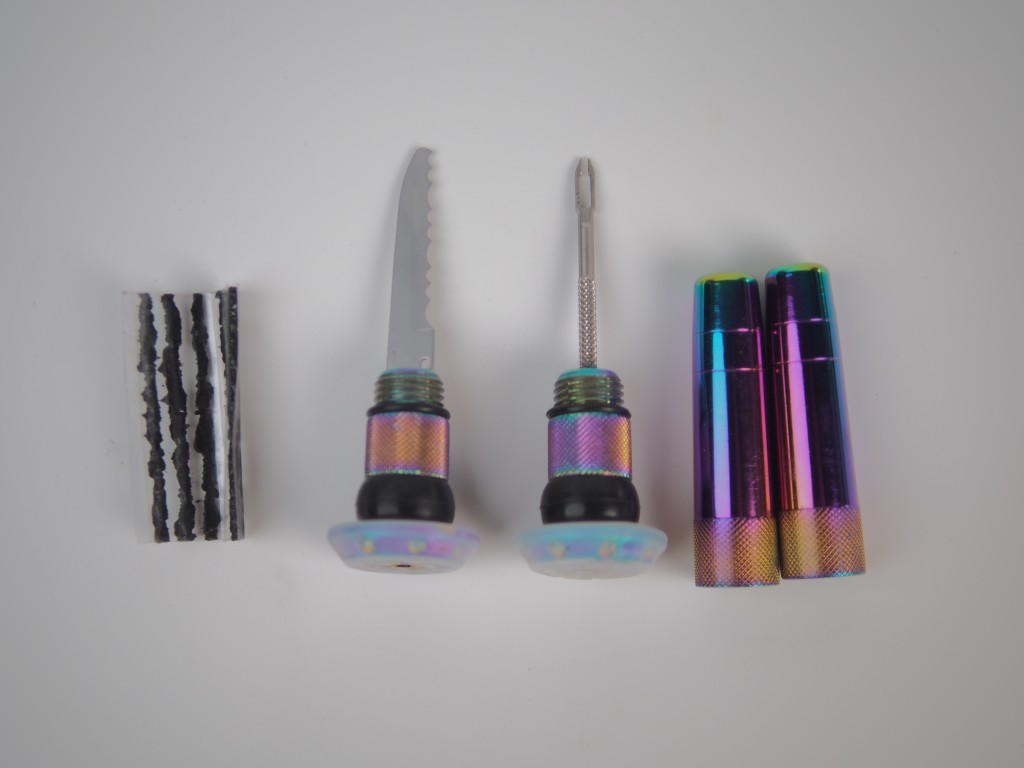 バーエンドに隠すことができる、チューブレスタイヤのパンク修理キットです!