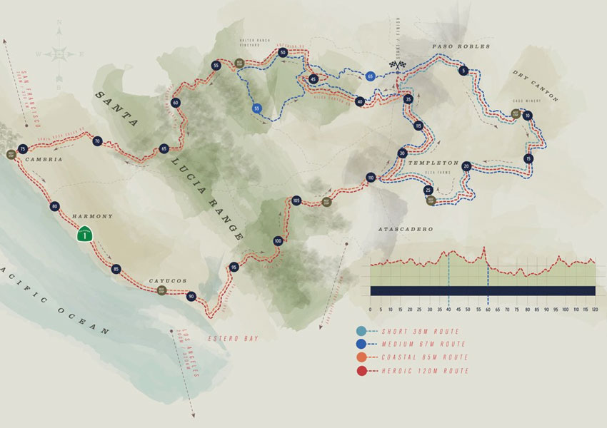 Short64㎞ / Medium116km / Coastal139km / Heroic203kmの4ルート