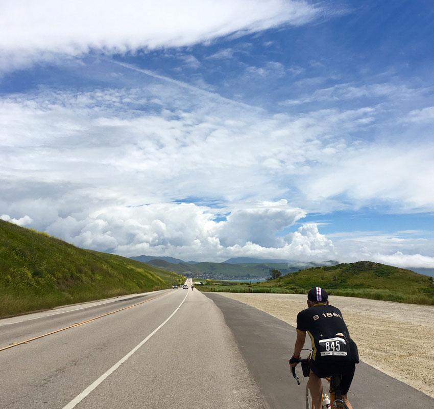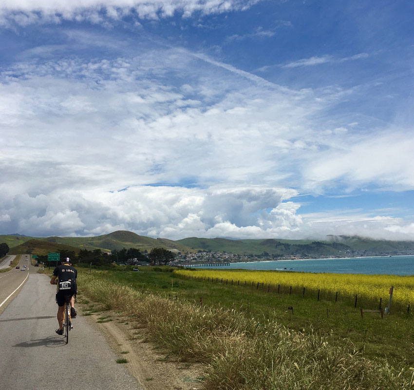 そうすると、たちまちカルフォルニアの空気に包まれ。気温も一気に上がります。 海風を感じ、花畑が広がる道で、追い風を味方につけ順調につぎのフィードへ。