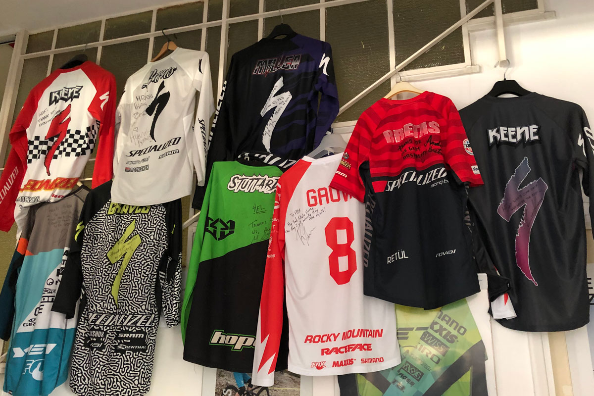 壁を彩るこのトレイル・マップと吊り下げられている幾つものジャージを見てるだけでワクワクする。