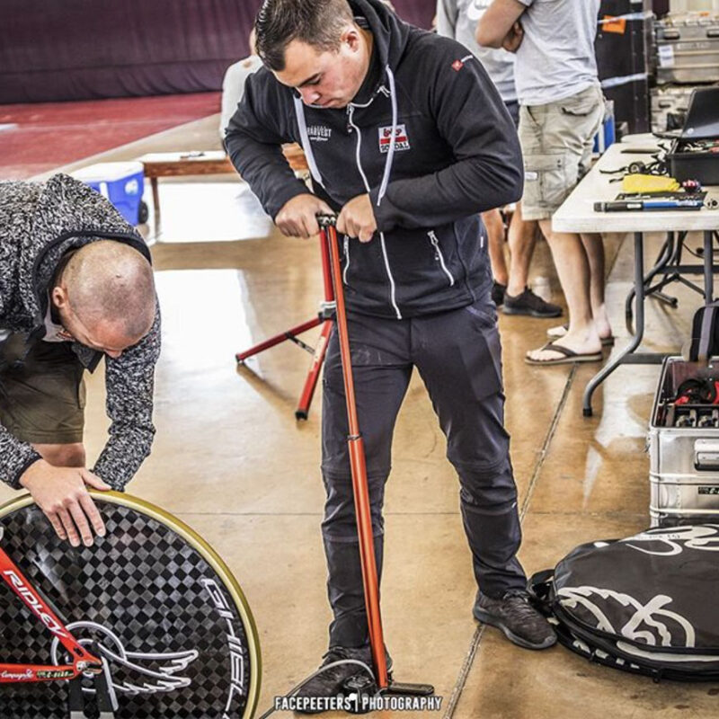 超高圧までスムーズに入るLEZYNE フロアポンプを使用