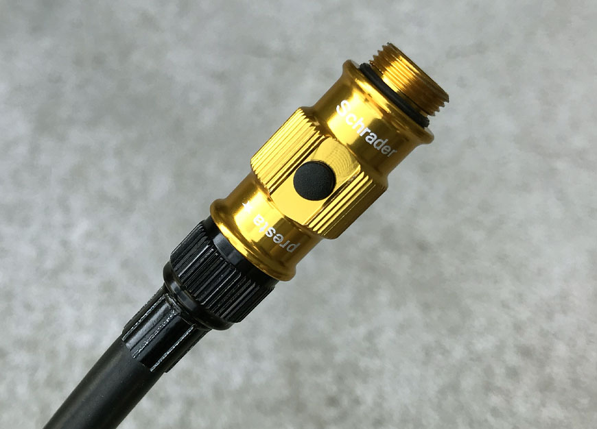 ポンプヘッドは、LEZYNE共通のねじ込み式ABS FLIP THREAD CHUCK。タイヤバルブしっかりと固定でき、エア漏れをシャットアウト。