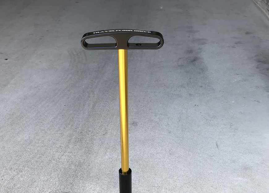 CNC TRAVEL FLOOR DRIVEは、名前の通り、長さ60cmと車のトランクや、飛行機用の輪行袋にもすっぽり収まるサイズで作られています。