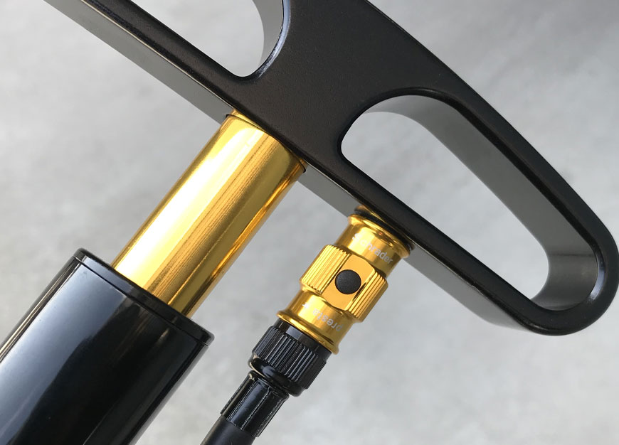 移動先で空気を入れる際でも普段使っているフロアポンプと同じ感覚で使える優れもの。
