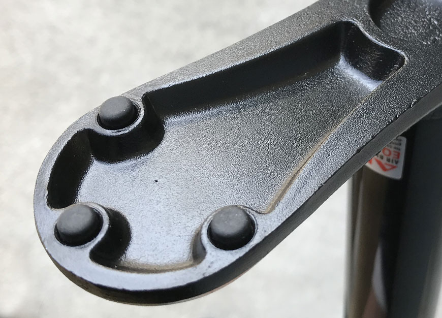 長さは60cm。通常のフロアポンプの約1/2。I形のフットベースにコンパクトメーターを組み合わせて省スペース化を実現しています。