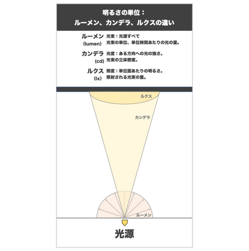 家庭用の照明だと、ルーメンやルクス表記が多い。