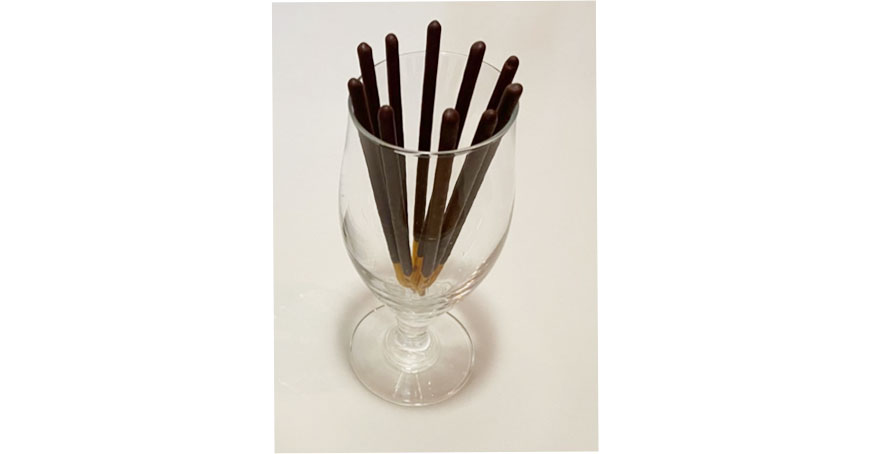 ポッキーをコップに入れたポッキーの角度がちょうど30度くらい。