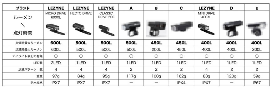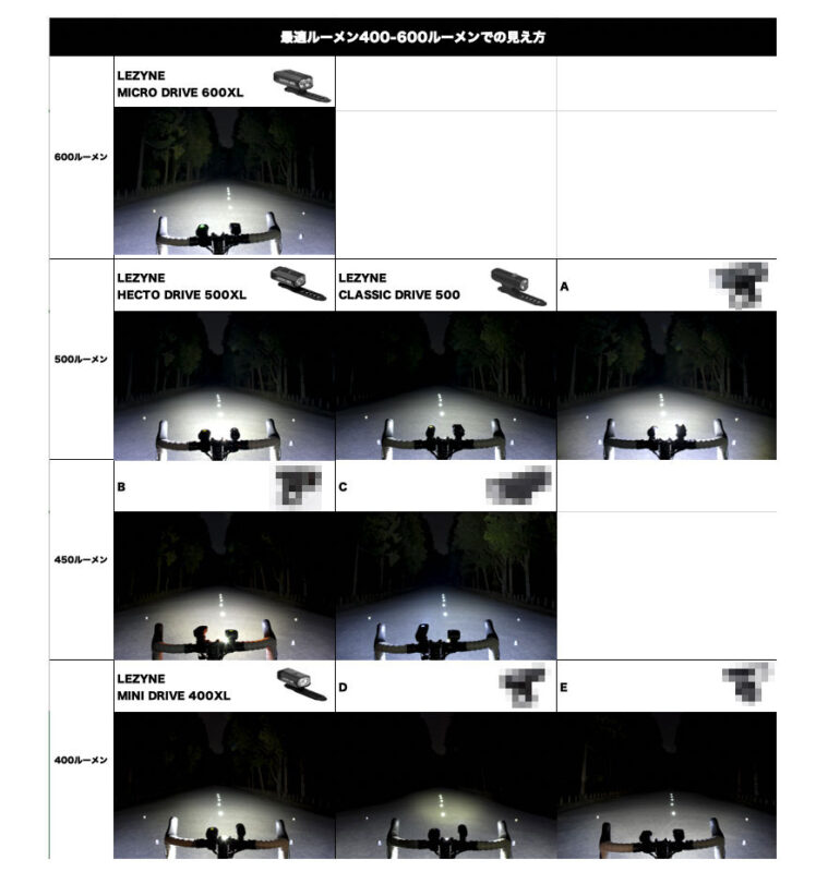 最適ルーメン400-600ルーメンを最高出力に持つLEDライト各社を比較。