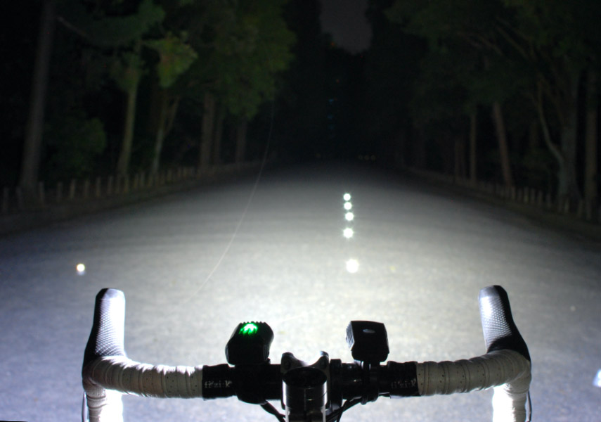 各社500ルーメン以上は、周辺の林の様子まで照らすことができています。