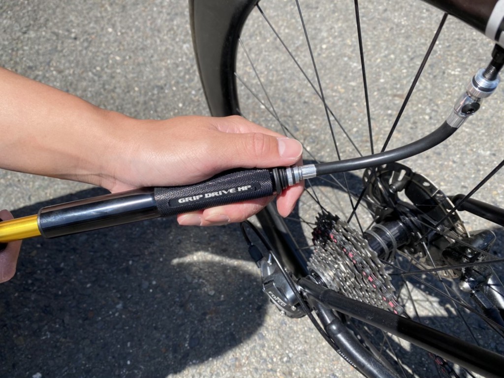 高圧まで空気を入れる事も楽にできるGRIP DRIVE