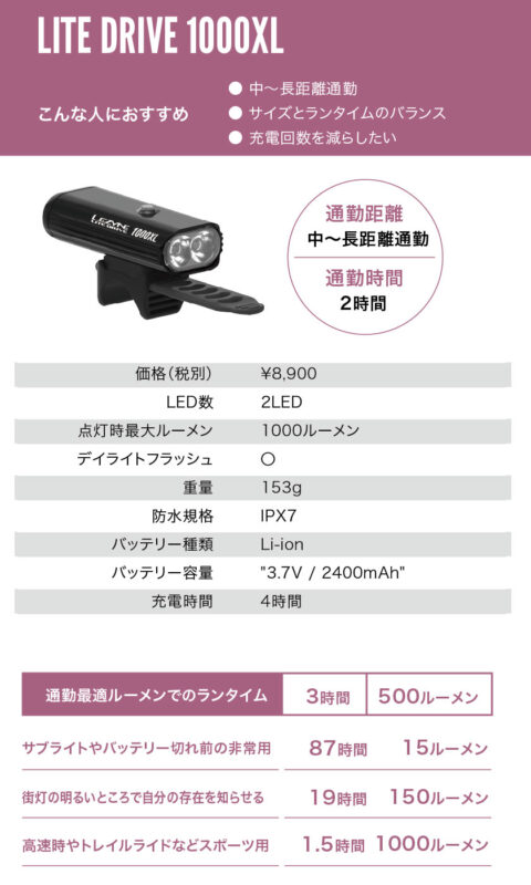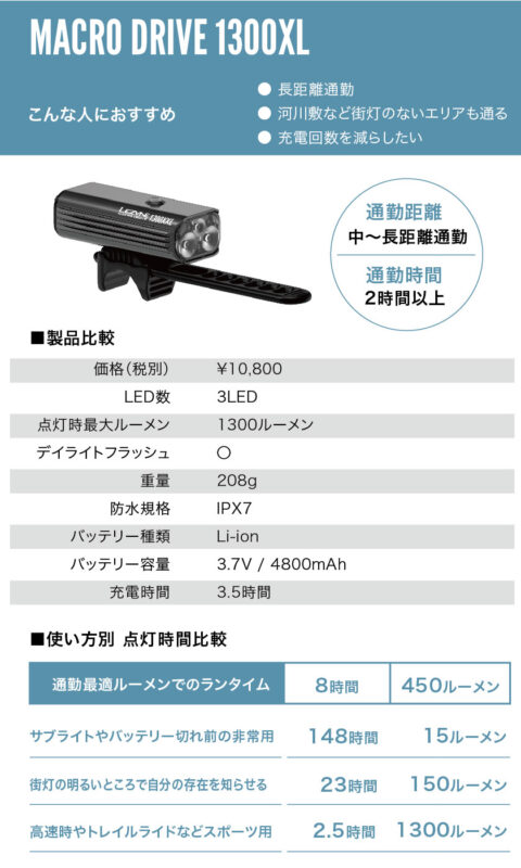 これをみながら他のラインナップや、他社ライトとも見比べていくとあなたに最適なライトが見つかるはずです!