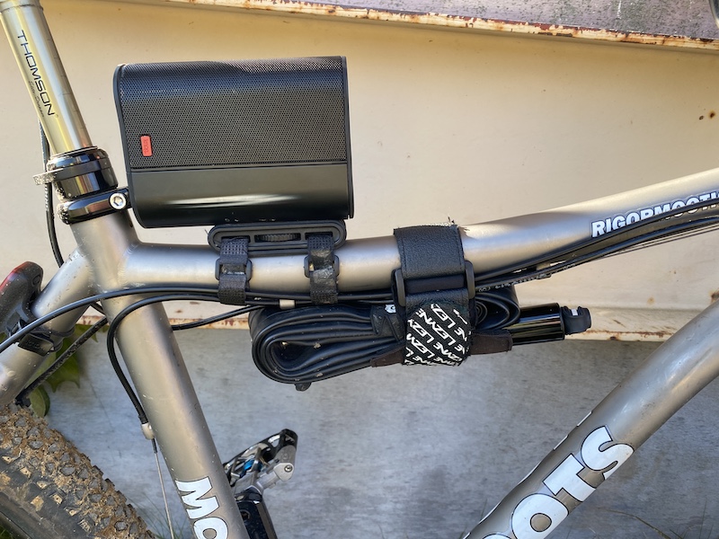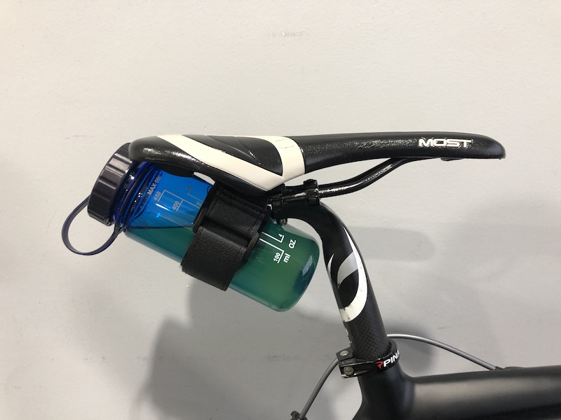 ボトルケージが埋まっている場合など、予備ボトルや、ペットボトルをこうやってくくりつけるのもあり。
