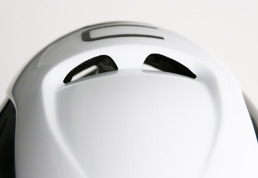 その結果生み出されたのが、特徴的なヘルメット上部のエアベントホール。