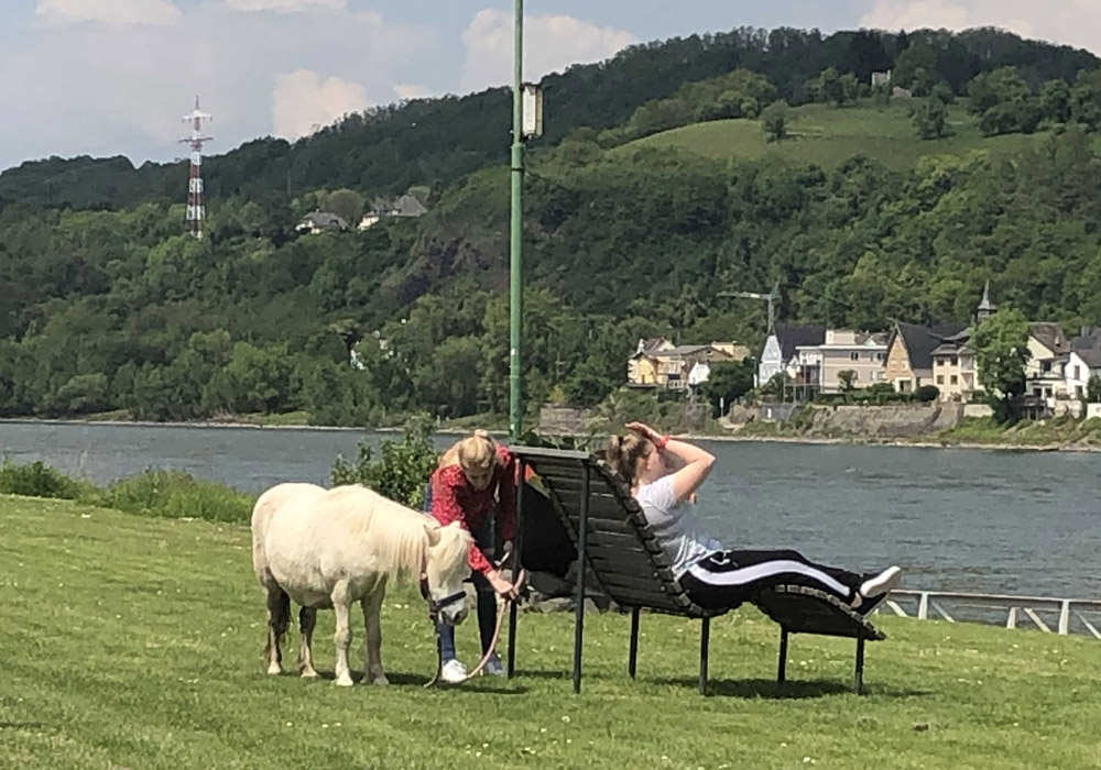 休憩中ふとみますとポニーを散歩させる女の子達….。