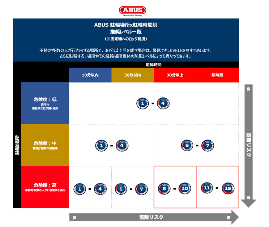 そこで、ABUSのカギの出番ですが、下記の表を目安に、レベルを選択しましょう。