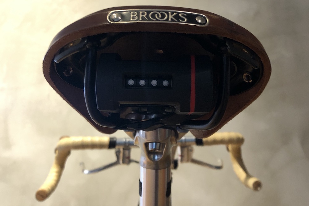 BROOKSはサドルトップや、レールの形状から内側に隙間が多く、実はいろいろ収納しやすいのです。