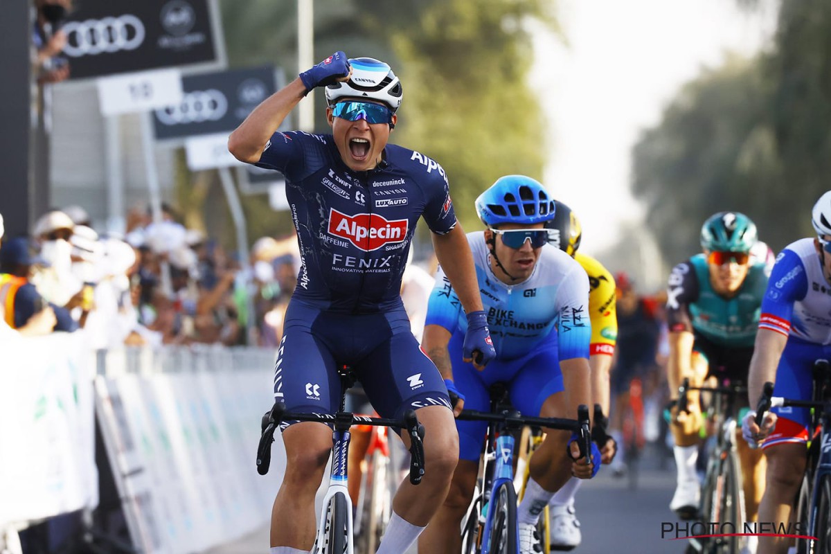 UAEツアー名物の砂漠コースを抜け、最後の直線コースでの超高速スプリントとなった展開で、ABUSエアロヘルメットがフィリプセンをアシスト。各チームの有力スプリンターを抑え込み、会心の勝利を飾り、同時に総合リーダージャージも獲得!!