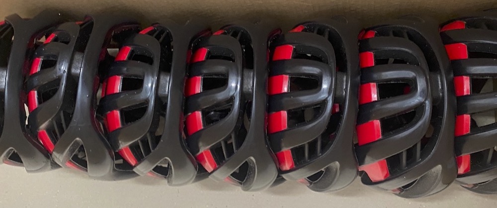 AIRBREAKERの上部やあご紐の接続箇所、ZOOM ACE(後方のフィッティングシステム)に使われているプラスチック製のパーツは、