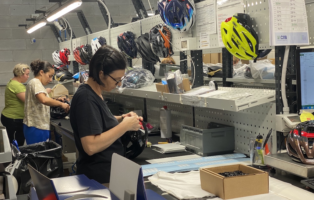 ここまでヘルメットの製造過程をお伝えした通り、1つのヘルメットができるまで最低でも10人(それ以上かも)の手の中を通ってきている。
