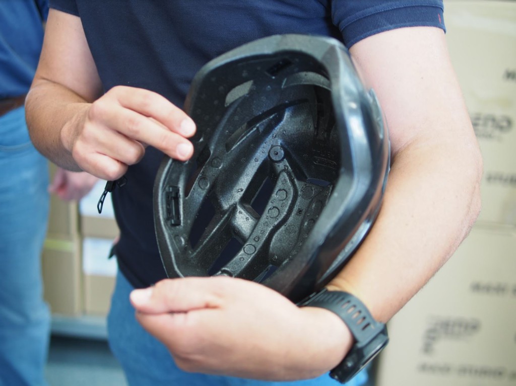 今回ご紹介したイタリアの工場では、EPS(ヘルメットの素材)やシェル(ヘルメットの外側部分)が作られていた。