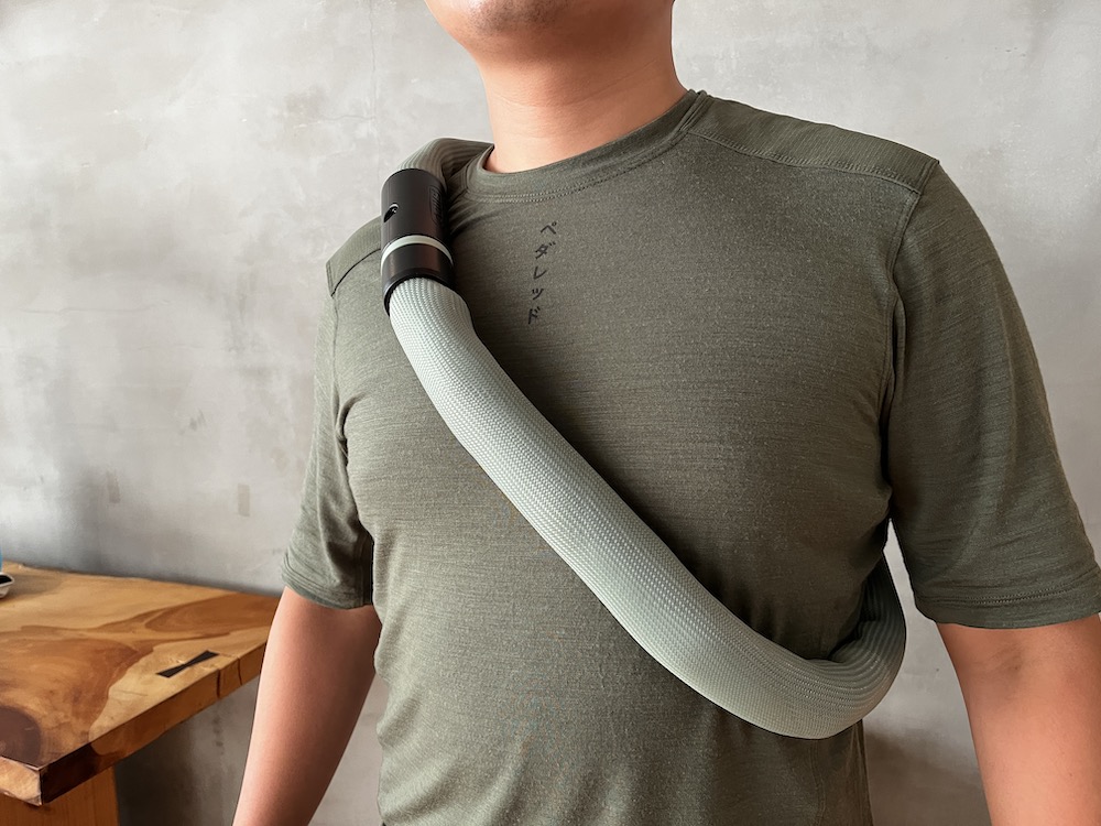まっすぐつながることで、見た目のシンプルさ、肩掛けの体へのフィット感。