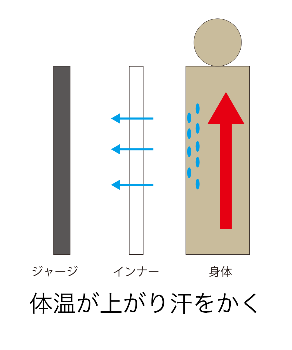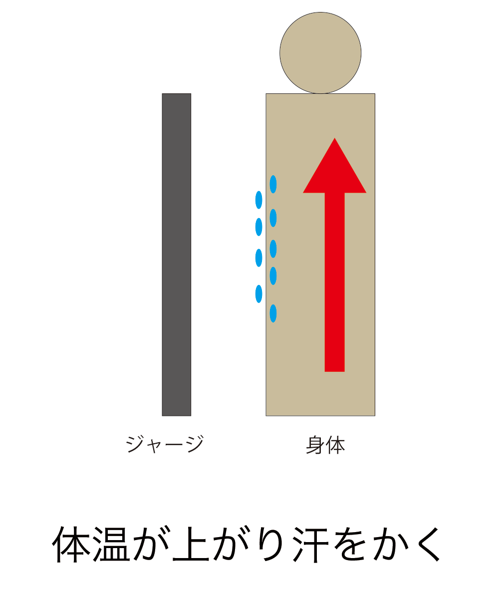この時にインナーを着ていると気化熱の発生はジャージとインナーの間。