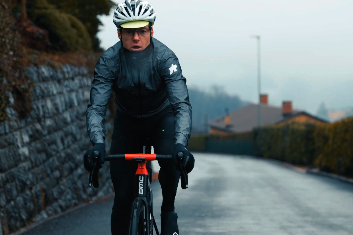 またASSOSには足の濡れを防ぐアイテムがもう1つあり、ソックスとシューズの間に身に着けるRSR THERMO RAIN SOCKS(RSRサーモレインソックス)もあります。