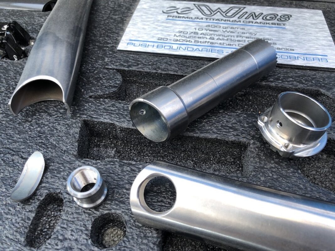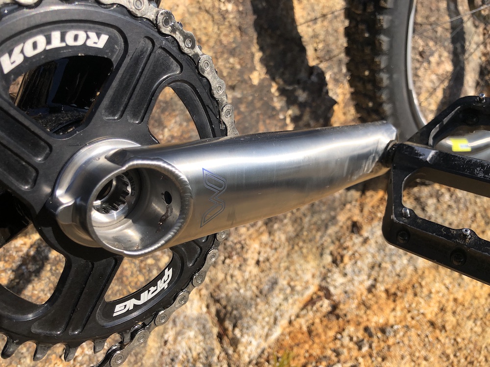 また、カーボンクランクだと「岩へヒットしたら‥」と考えると怖くなりますが、チタン素材だと比較的安心です。
