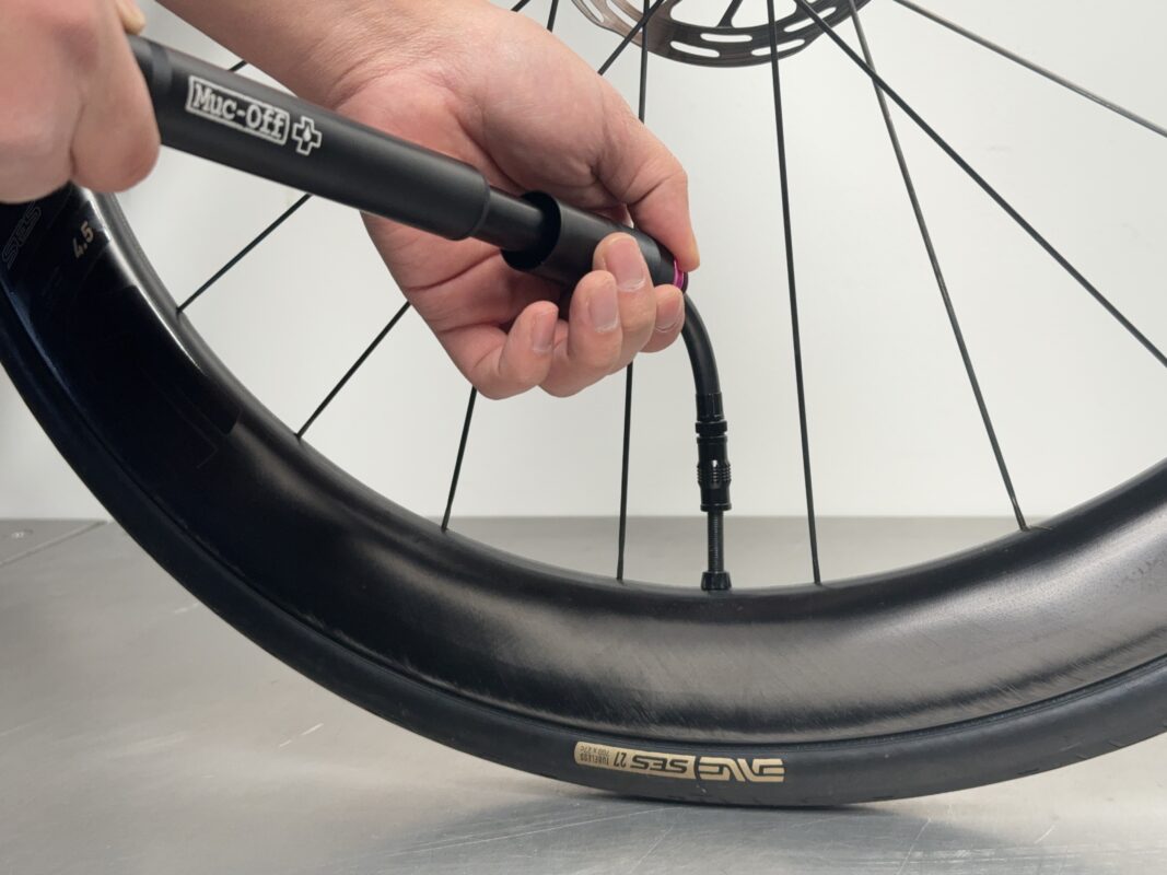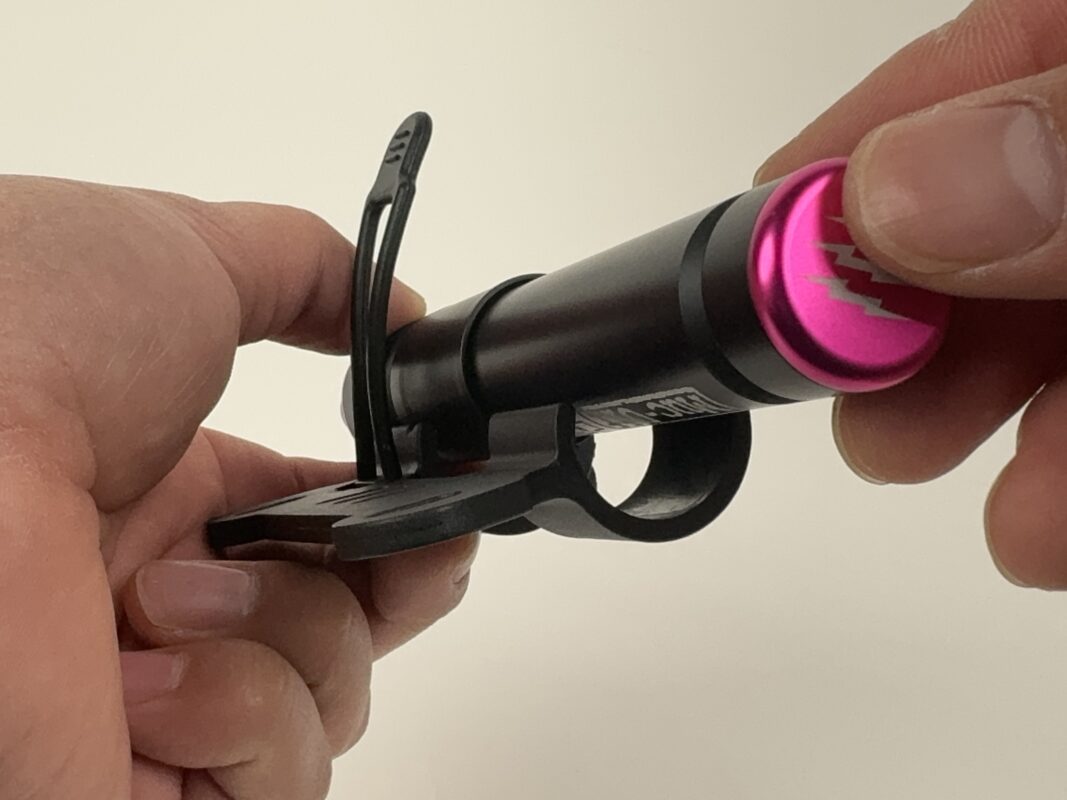 ハンドル側(Muc-Offロゴ側)全部が空気を入れるスペースとなるため、サイズの割に1回の空気充填量が大きくなります。