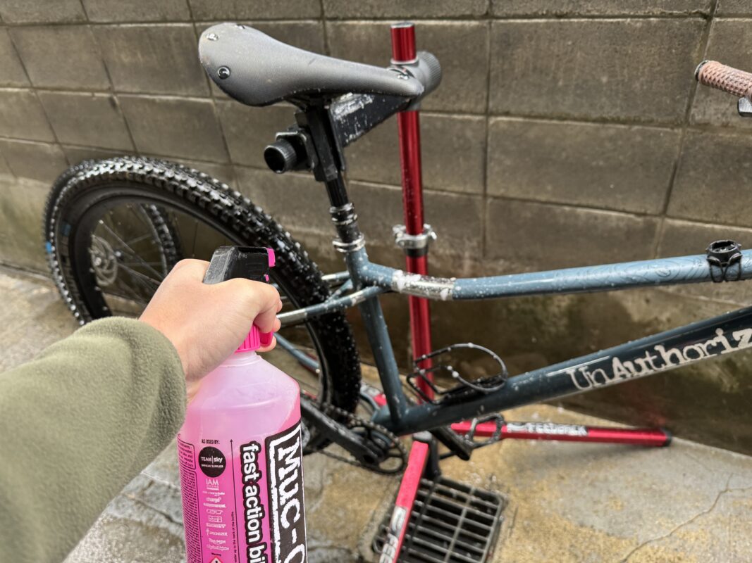 吹きかけた瞬間黒い汚れがみるみる落ちていくMUC-OFF DRIVETRAINCLEANER