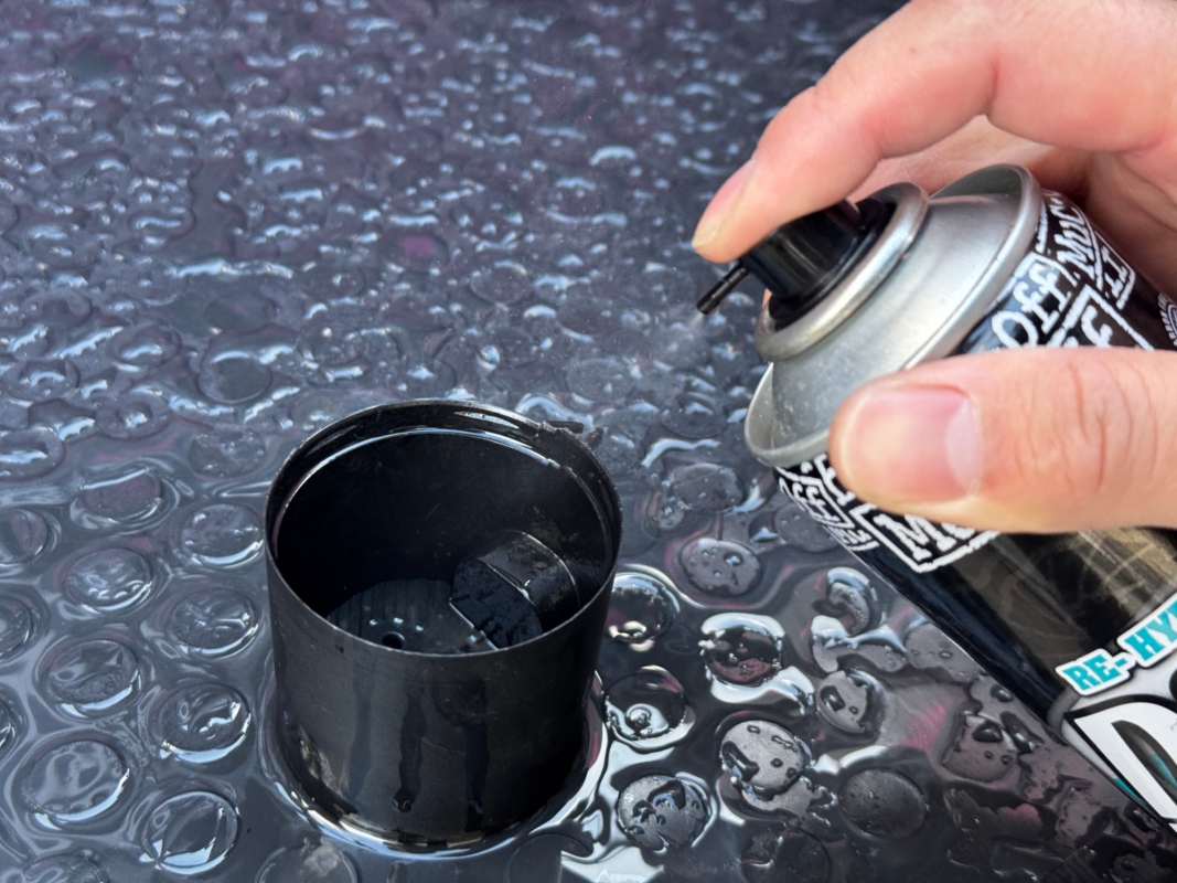 2.ディスクブレーキクリーナーをパッドにスプレー