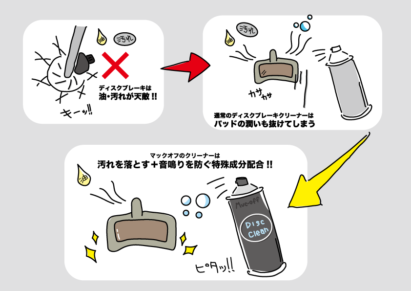 マックオフはディスクブレーキクリーナーは素早く汚れを落としつつも、