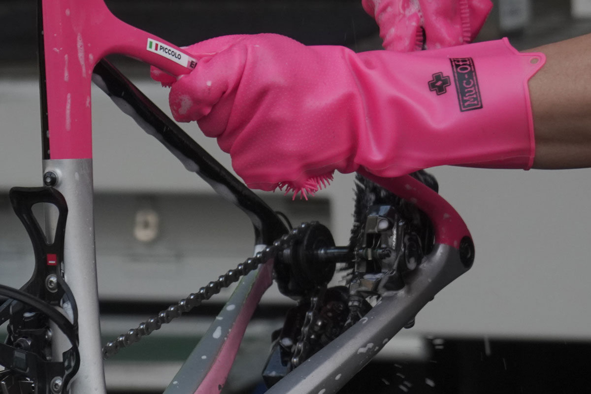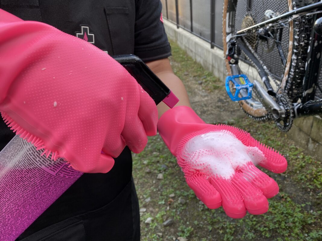 自転車か、グローブに直接nanotech bike cleanerを吹きかけ、