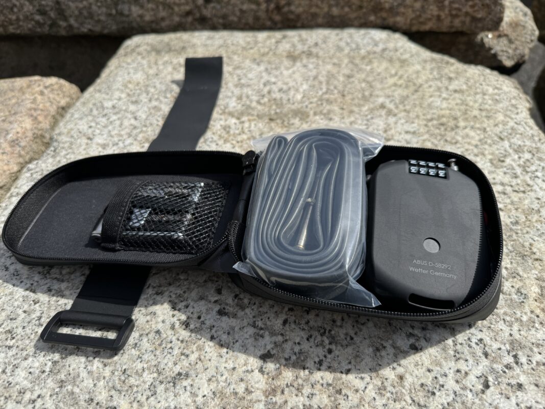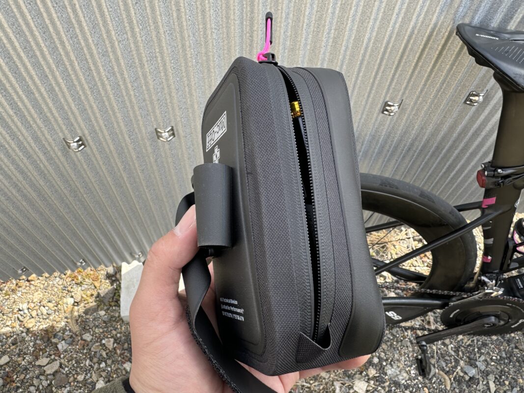 そんなアイテム一式をしっかり収納したうえで、サドルにくくりつけて固定。