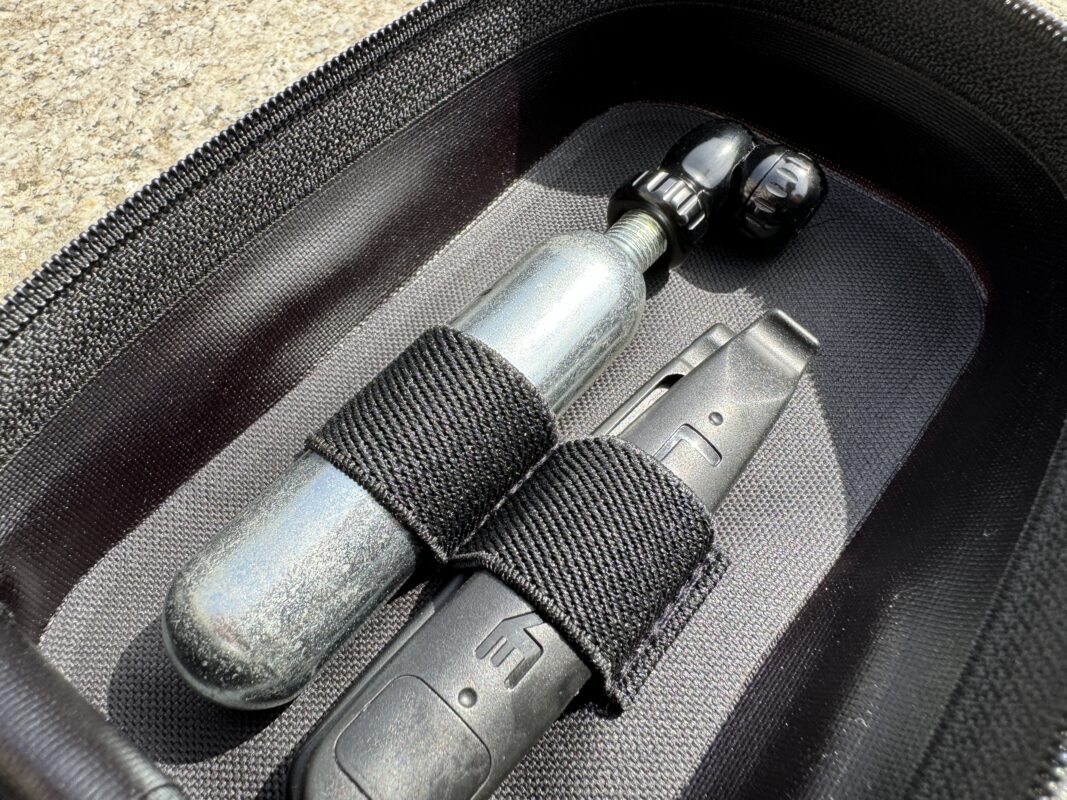 また、CO2やタイヤレバーを固定するバンドもついています。
